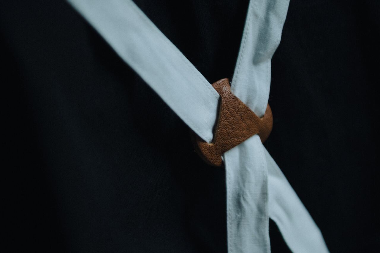 緻密な縫製は徳島県上勝町で「 しごと着 」をコンセプトにものづくりをされる<JOCKRIC>の黒川勝志さんによるもの。仕事着として毎日身につける料理人の声をもとに生まれた、身体に馴染み、すっと背筋が整う「毎日身につけたいエプロン」です。